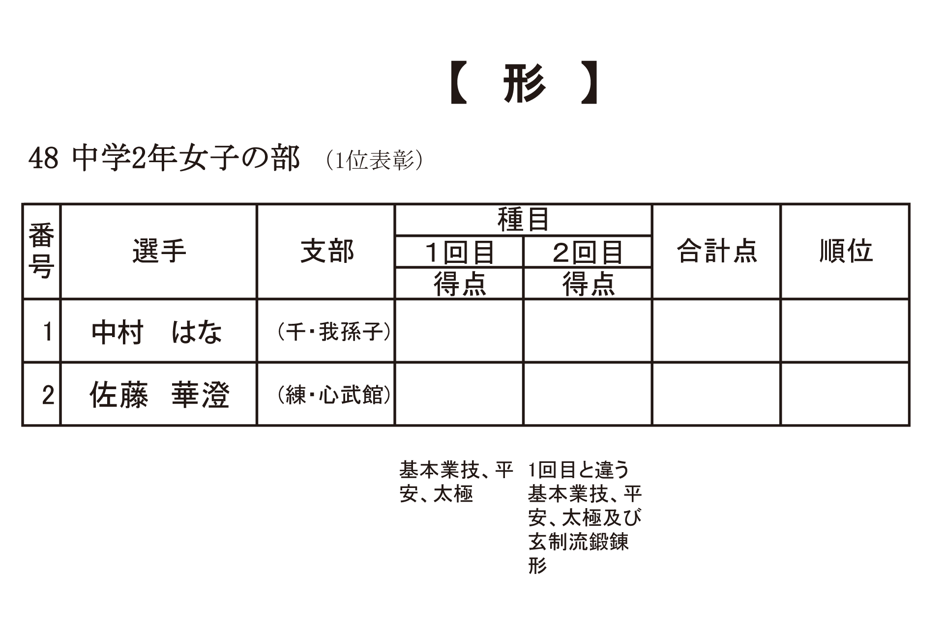 | 入賞 | 大塚 啓剛 (練・大泉) 間下 良太郎 (埼・伊奈) 大槻 飛奈太 (練・心武館) 坂田 旬 (練・大泉) |