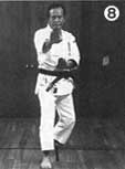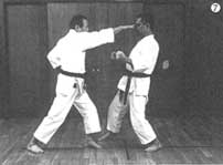 玄制流ならではの構えがこの「帆立て構え」(写真3・4)だ。実戦に即したこの構えで大切なことは、前手の使い方だ。前手で相手の攻撃を上下左右に捌くと同時に、間合いをつめて攻撃に転じる(写真5・6・7)。したがって、「手首は床に対し、垂直になればなるほど良い」と土佐邦彦氏は言う。