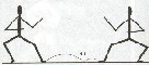限度間合いとは、相手に対して最大限の間合いであり、その一歩を誘導に利用して術技を施すことのできる間合い。