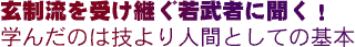 現在、玄制流の玄制流武徳会に勤務している土佐樹誉彦くん。玄制流を正しく学び、伝承するためにも、日々勉強しているという。