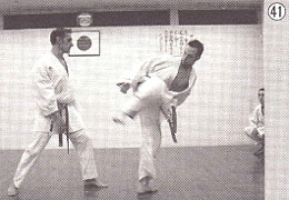 - 足払いされたら、後ろ廻し蹴り(写真39〜44参照)。