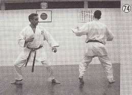 - 内から手を触ったら、斜めに捌きながら、スイッチして逆突き(写真64〜71参照)。